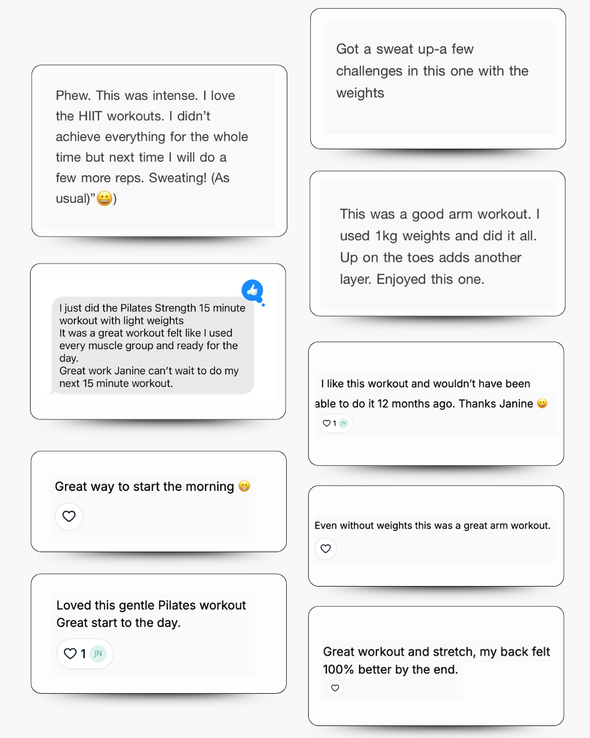 Because it was built around the real reasons people stop — not enough time, content that doesn't fit their body, no support. Short sessions, progressive structure, and real community address all three.
